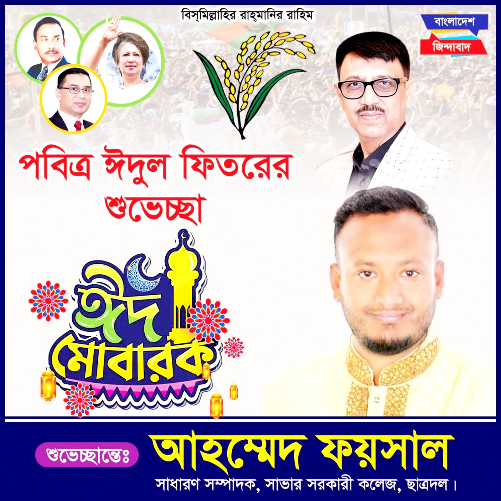 সাভার সরকারি কলেজ ছাত্রদলের পক্ষ থেকে ঈদের শুভেচ্ছা জানালেন আহমেদ ফয়সাল
